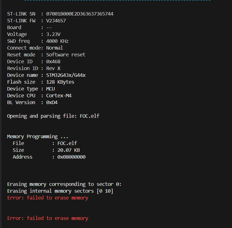 错误显示无法擦除扇区,连接ST-LINKUtility显示如下: