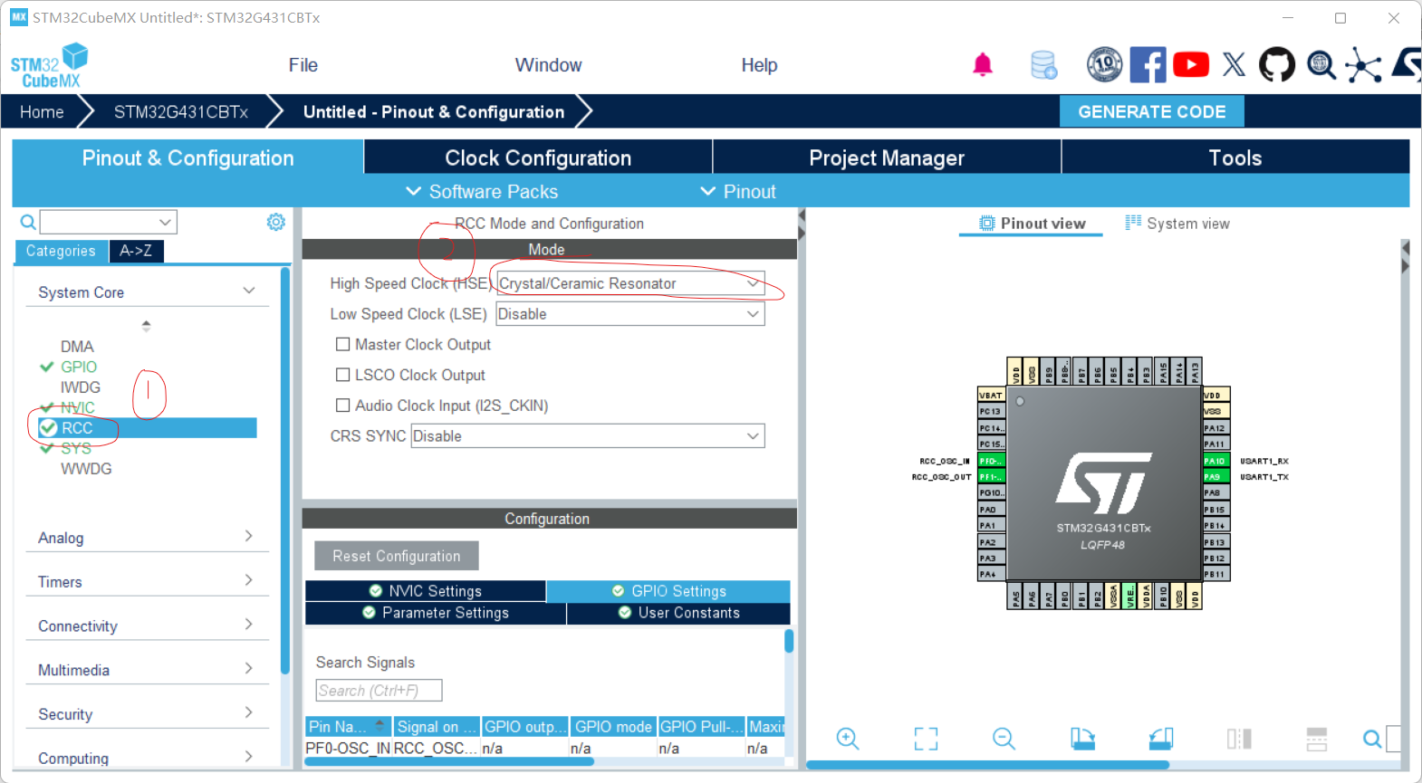 - 开启SWD,就是允许我们使用ST-link进行下载调试,时钟来源选择系统时钟