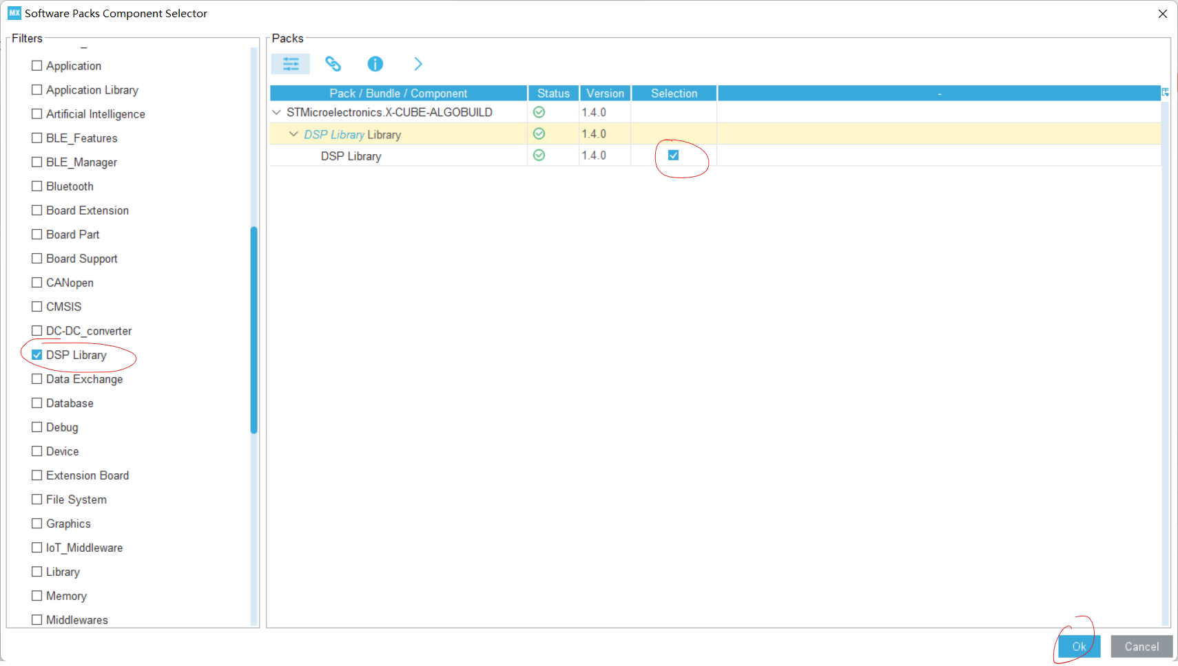 - 找到DSP库,并且勾选上,可能下载会比较慢