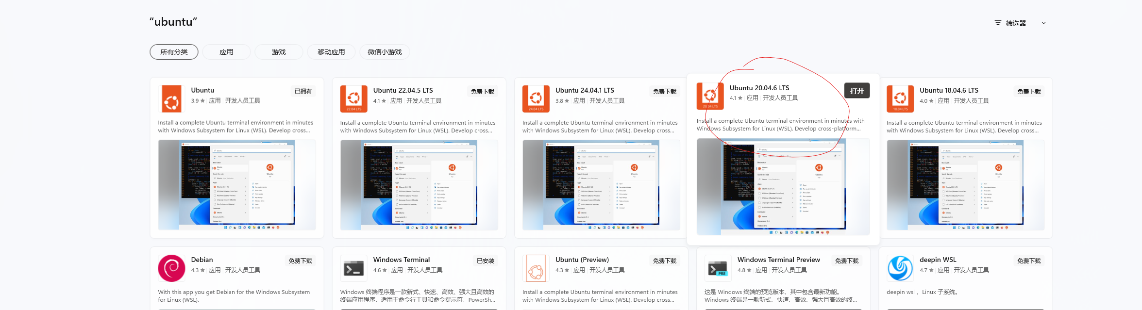 - 直接在store安装,选择20.04版本