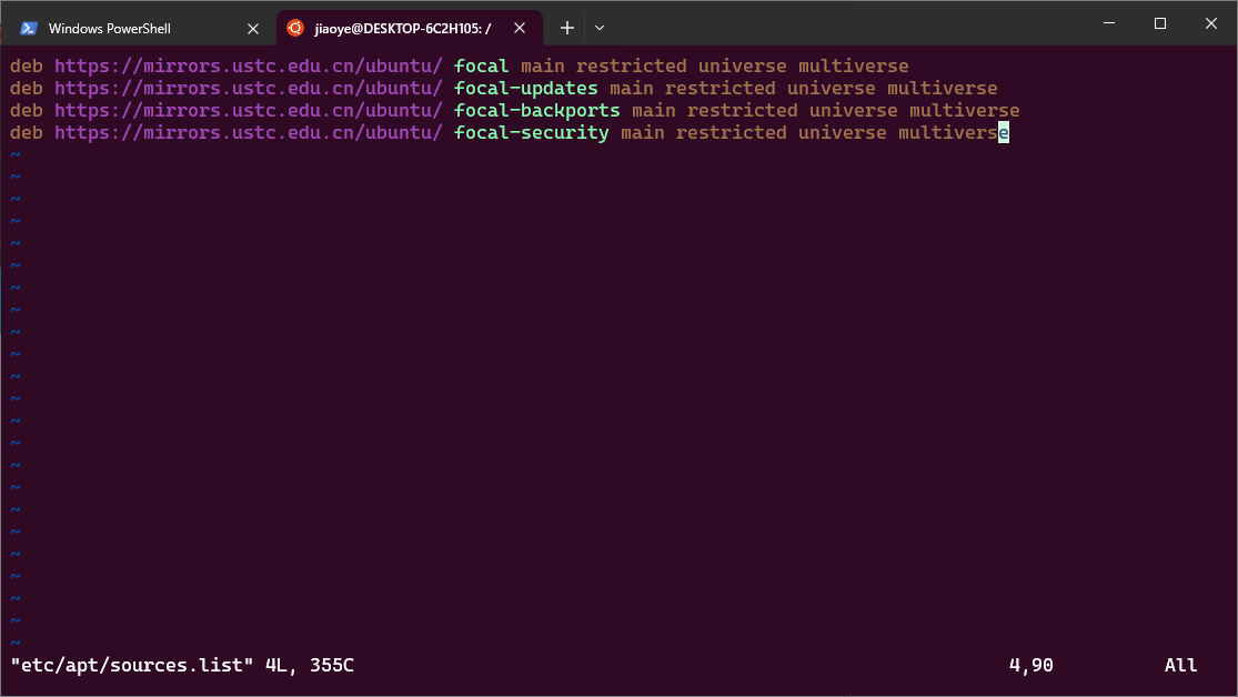 1 | deb https://mirrors.ustc.edu.cn/ubuntu/ focal main restricted universe multiverse |