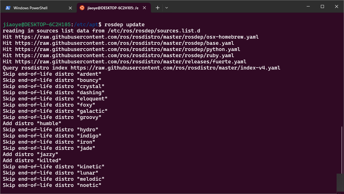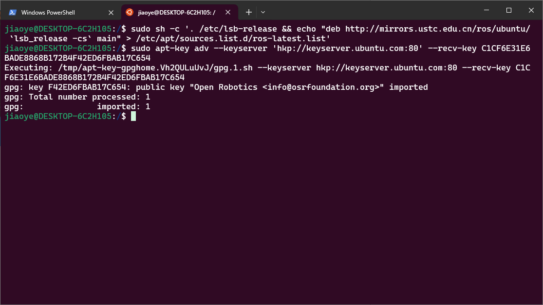 windows使用wsl2+ubuntu20.04安装ROS1的步骤