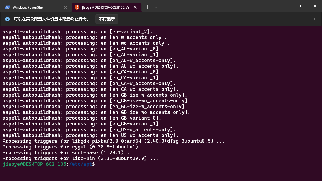 - 4.重启wsl,在powershell里输入wsl – shutdown重启